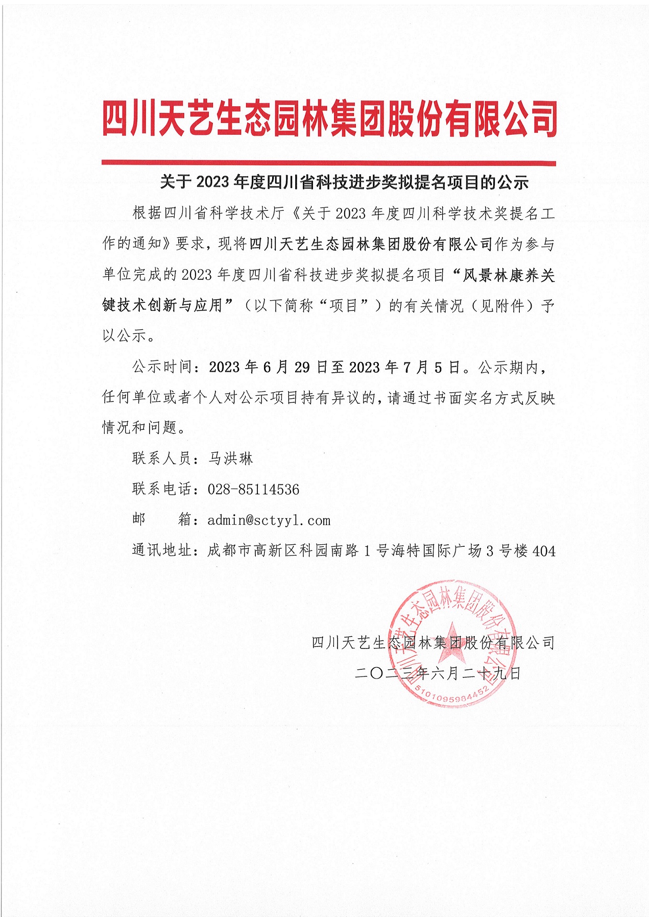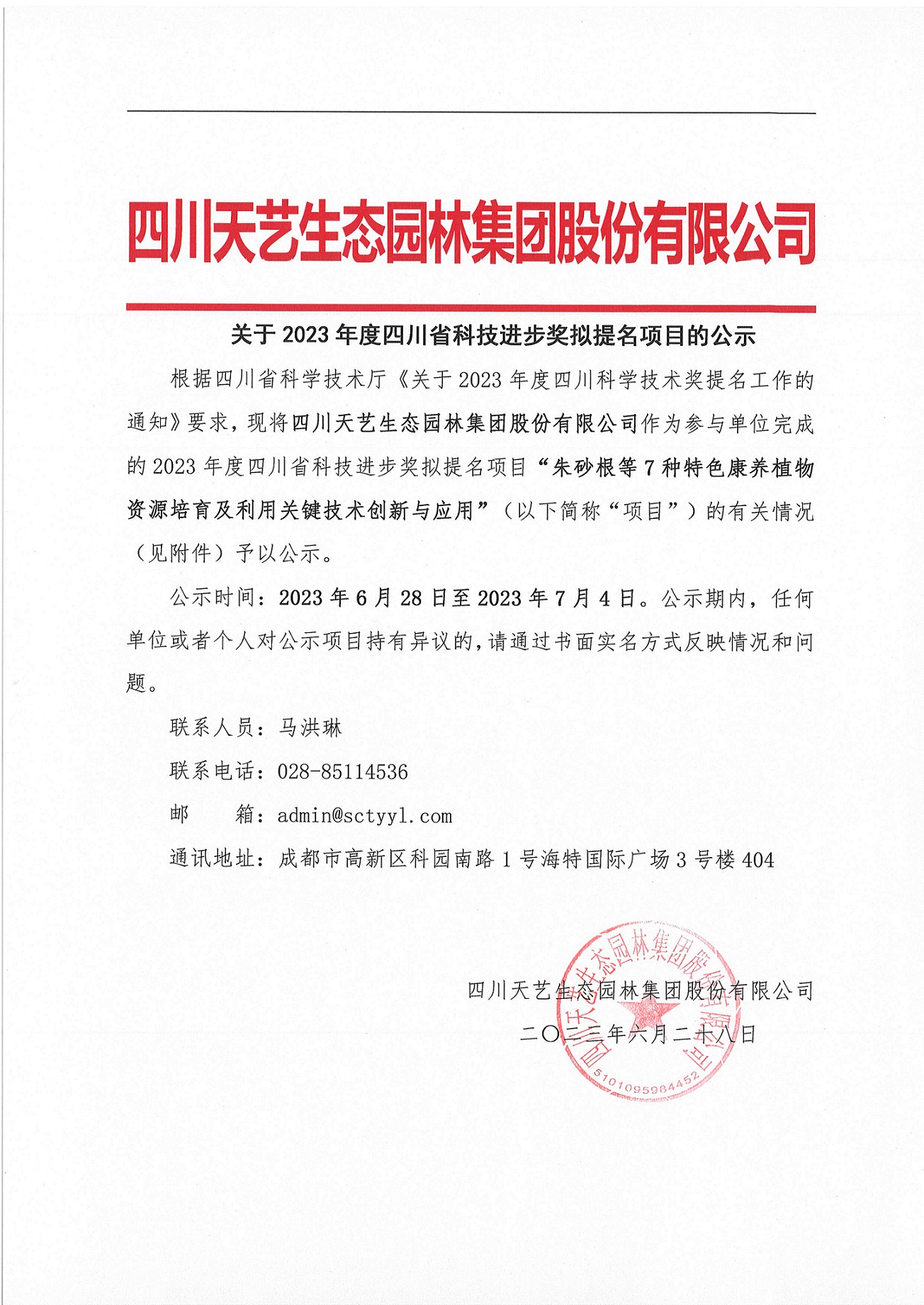 關(guān)于2023年度四川省科技進(jìn)步獎(jiǎng)擬提名項(xiàng)目的公示